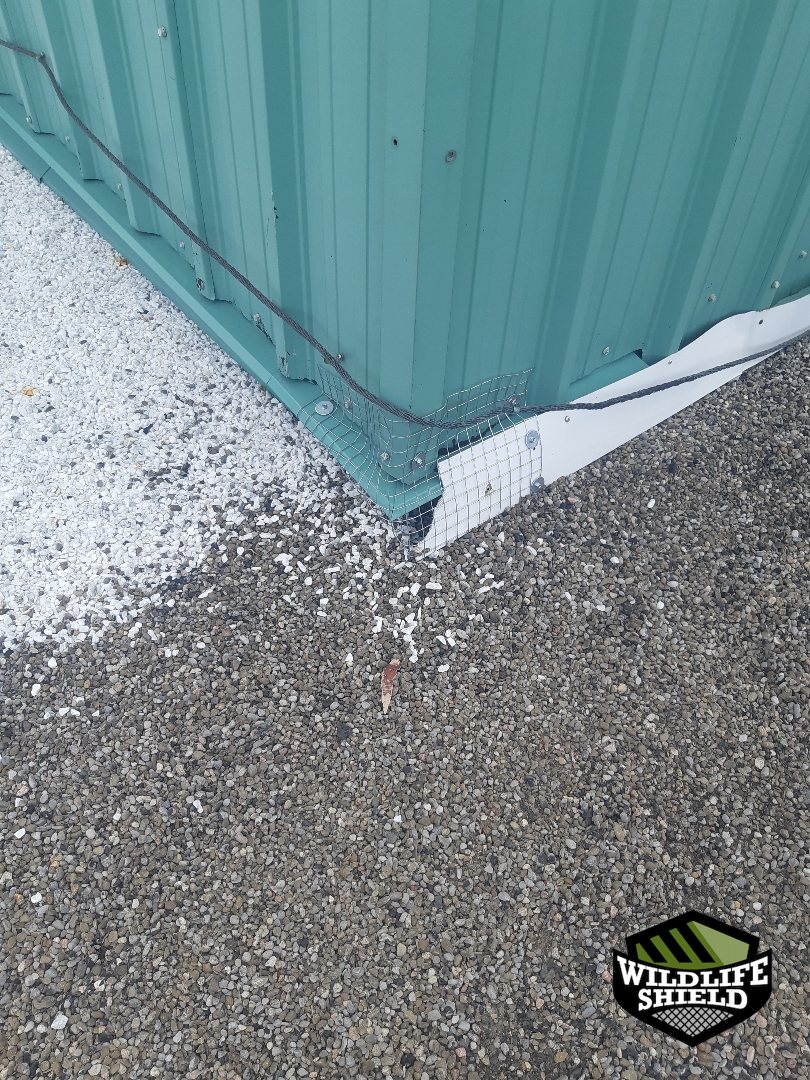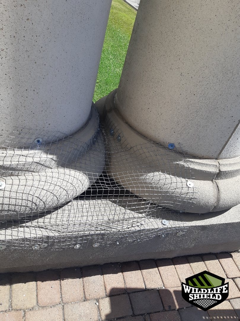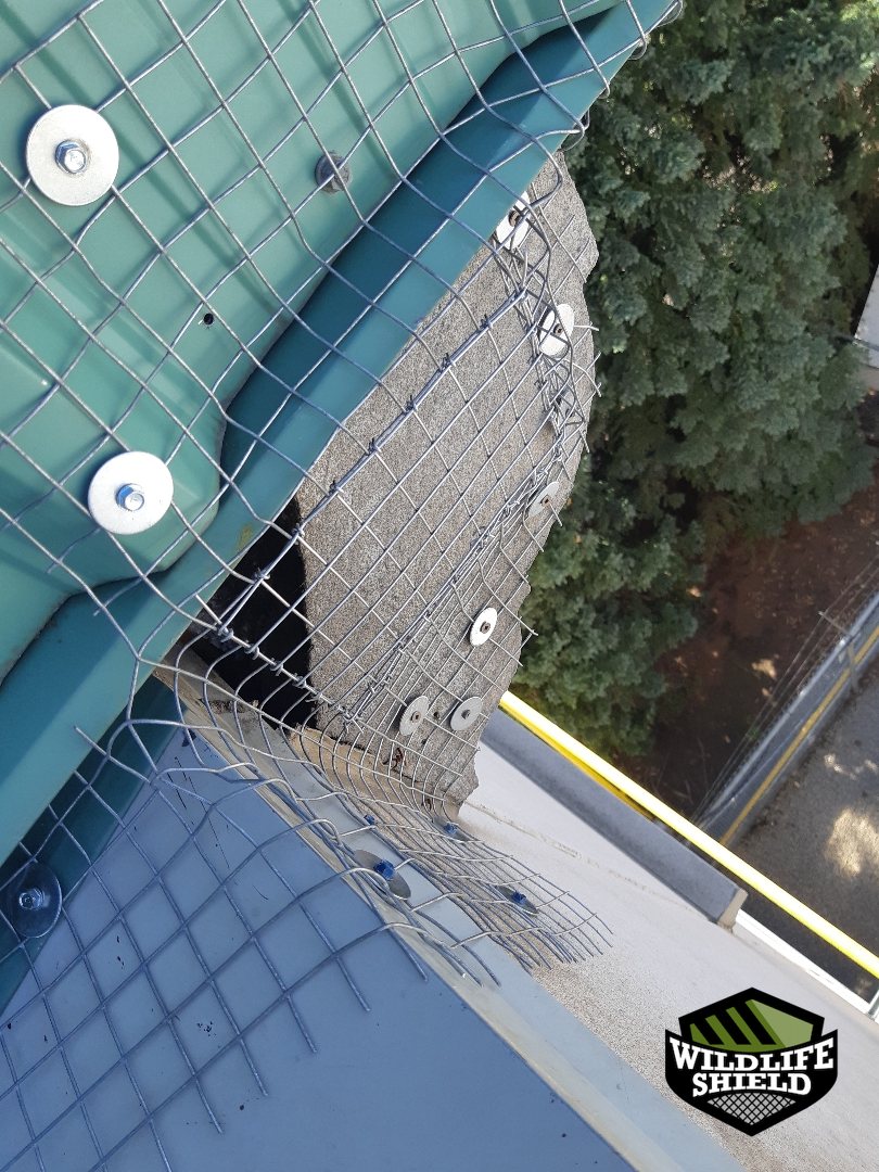 Once raccoon activity had ceased, all one-way doors were removed. Heavy-gauge galvanized screening was installed over the identified openings, including roofline gaps, pillar joints, and lower wall voids. The screening was mechanically fastened and contoured to the structure to provide long-term exclusion while maintaining building integrity.