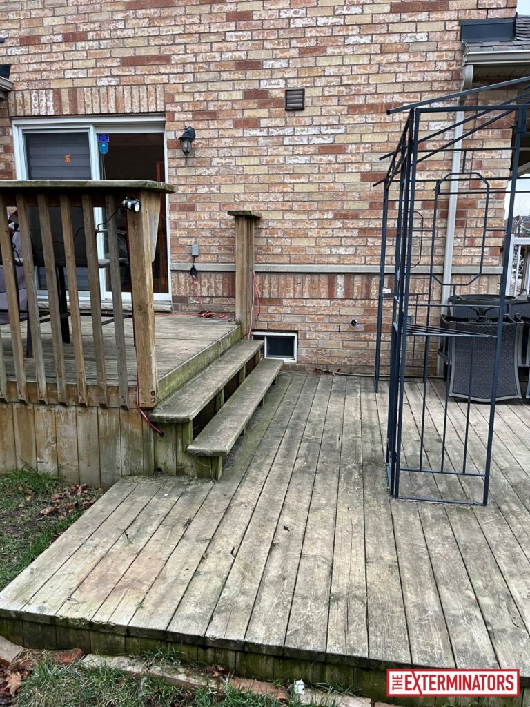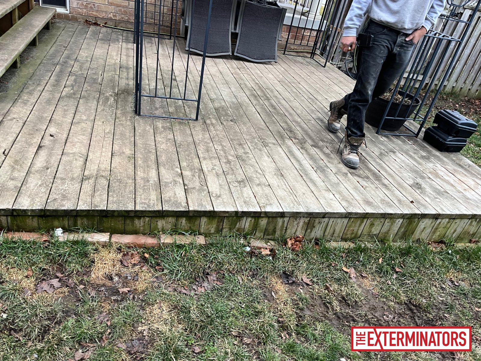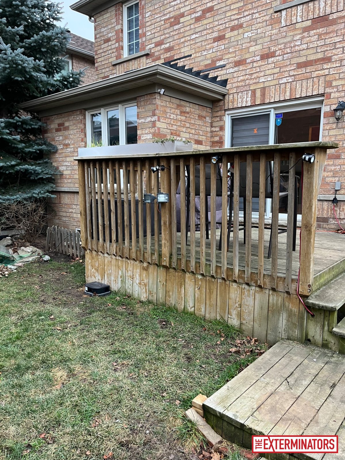 During the initial visit, our technician confirmed active rat presence inside the home. A full exterior inspection was completed, including detailed inspection around and beneath the multi-level back deck. No visible or accessible exterior entry points were identified at the time of service.