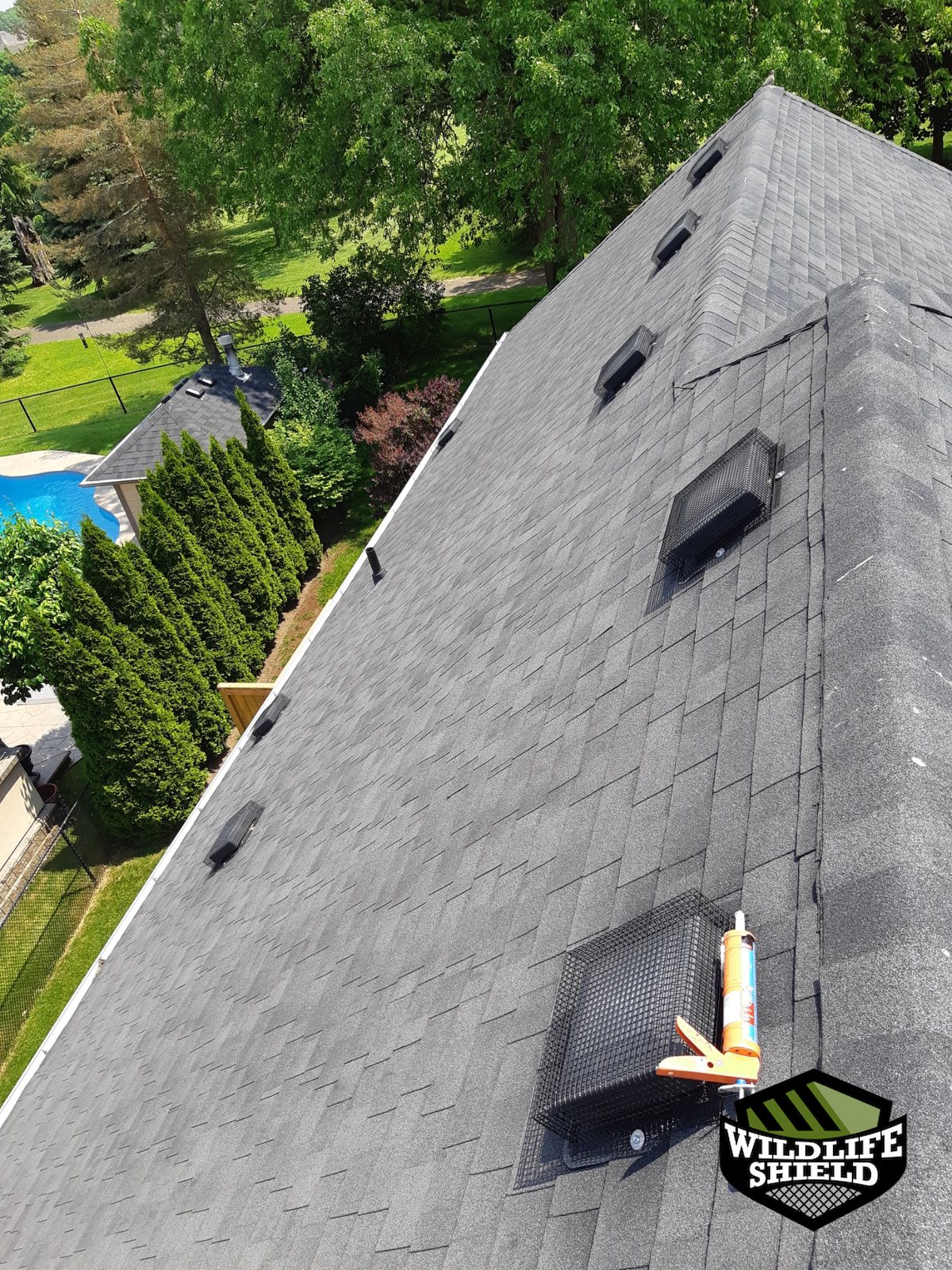 The property is a large detached home with an expansive roof surface, multiple roof penetrations, and numerous vents. The roof design and exposure increase the importance of proper sealing at edges, vents, and intersections to prevent wildlife access.